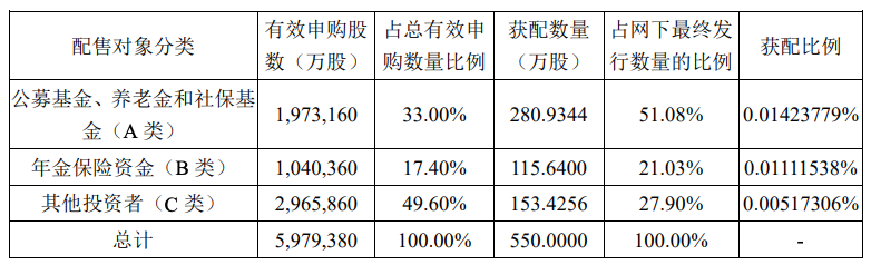网下初步配售结果如下: