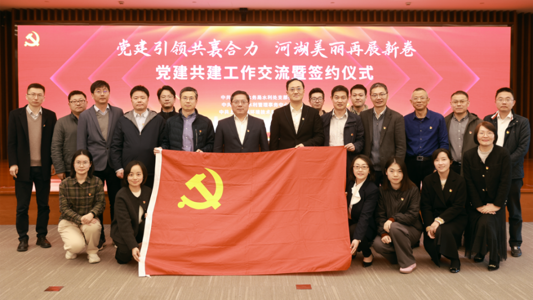 上海市水务局水利处党支部书记、处长吴伟峰,市水利中心党委书记、主任金鹏飞,环境公司党委书记、执行董事龚治国及公司班子成员,三家党组织代表参加签约仪式。