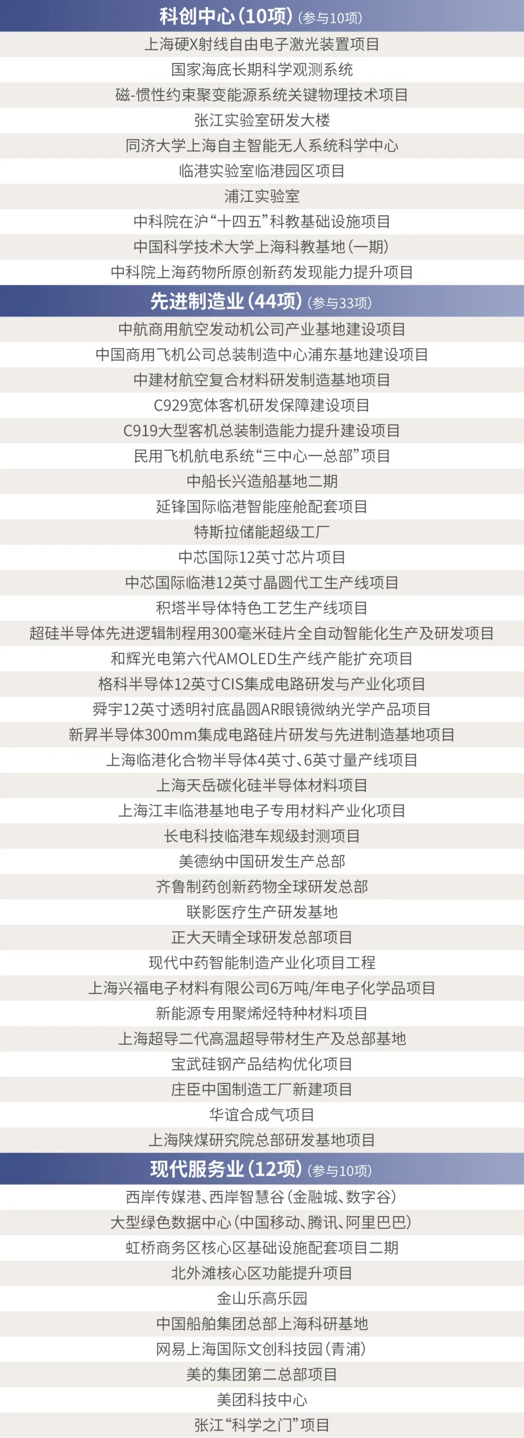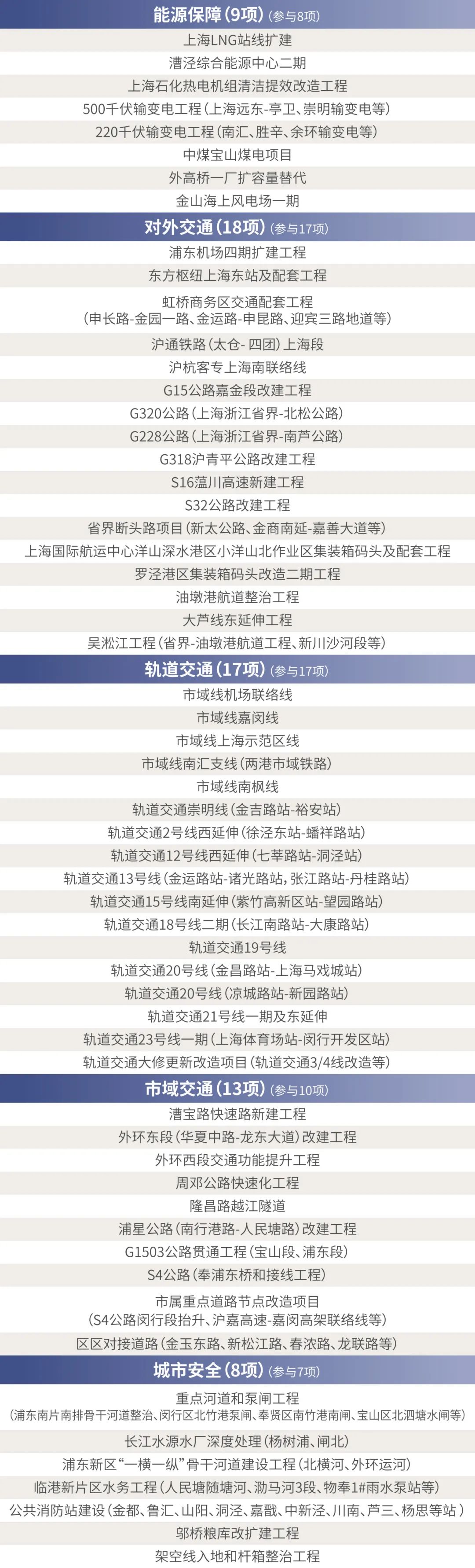 2025年上海市发改委发布重大工程计划安排正式项目186项、预备项目35项,覆盖科技产业类、社会民生类、生态文明建设类、城市基础设施类、城乡融合与乡村振兴类。