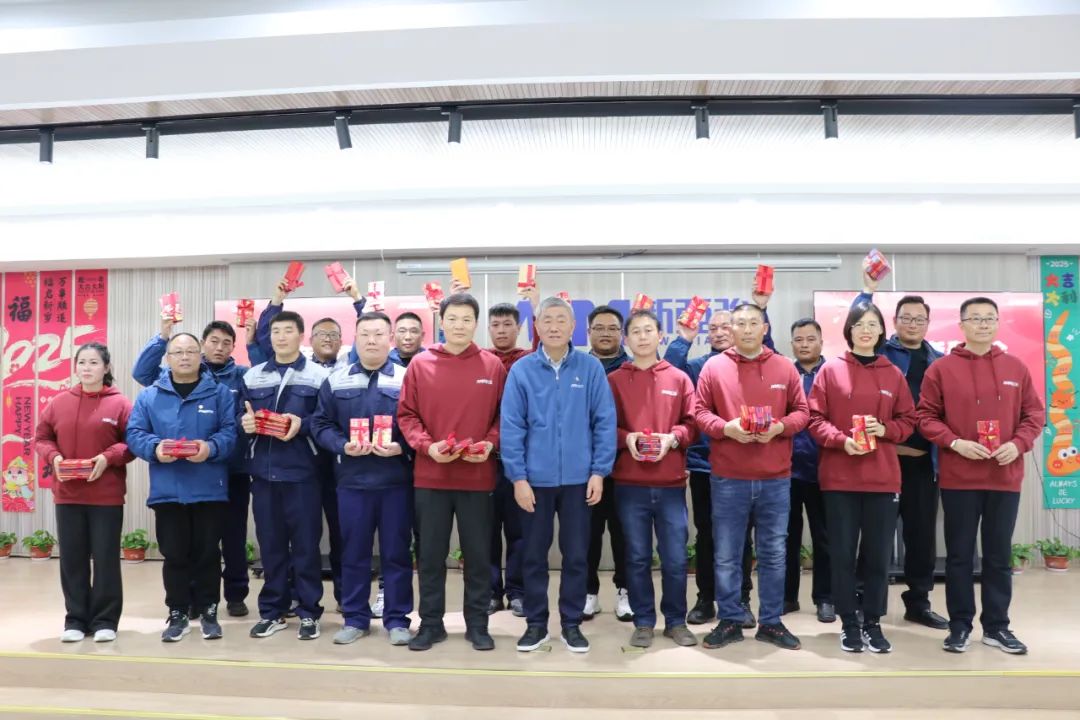 超炫舞蹈、年度神曲、美文朗诵、情景小品,各部门员工自编自演的节目嗨翻全场;幸运抽奖和趣味盎然的小游戏,更是将现场的欢乐氛围瞬间拉满。最后,董事长现场向大家派发新年大红包,现场气氛达到了顶点。大家在歌声中共同祝福2025,风浪再大,我们共同携手、无惧挑战、共创未来,明天更美好!