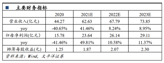收入逐季恢复较好增长:从上半年来看(考虑疫情低基数、我们分别较 2020 年及 2019 年比较看),公司营业收入 34.11 亿元,同比增长91.27%,较 19 年略下滑 1.31%,收入体量基本恢复 19 年的同期水平。上半年归母净利润 11.59亿元,同比增长 63.85%,较 19年下滑 8.61%。上半年毛利率 50%,同比下滑 1.11pct,较 19 年下滑 1.48pct;销售费用率 14.04%,同比下滑 1.86pct,较 19 年下滑 1.34pct;管理费用率 1.14%,同比下滑 1.83pct,较 19 年上升0.22pct;研发费用率 0.44%,同比下滑 0.12pct,较 19 年上升 0.08pct。净利率 33.98%,同比下滑5.69pct,较 19 年下滑 2.72pct,主要因为毛利率下滑导致。