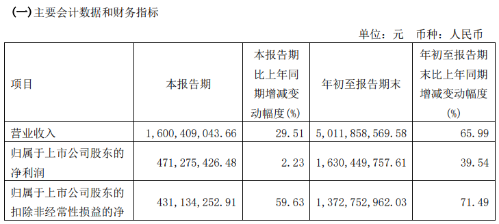 2021年第一季度,归属于上市公司股东的扣除非经常性损益的净利润约为6.48亿元,增幅在63%左右;而2021年第二季度,归属于上市公司股东的扣除非经常性损益的净利润2.93亿元,同比增幅在122%左右;进入2021年第三季度,归属于上市公司股东的扣除非经常性损益的净利润约为4.31亿元,增幅在60%左右。