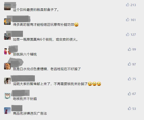 但是,前面已经提到,消费者对健康的认知,早已不是十多年前的水平,所谓核桃“以形补形”早已过时。在养元饮品眼中消费者重度用脑的痛点,逐渐成为自家产品的槽点。