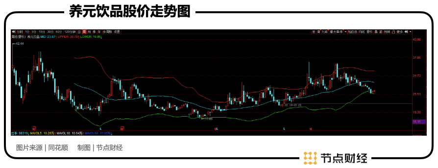 此后养元饮品的股价总体处于宽幅震荡阶段,一直延续到现在。