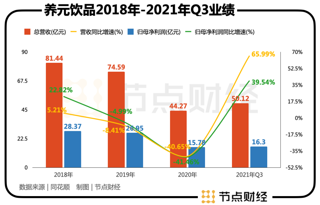 数据显示,2018年至2021年Q3,公司营业收入分别为81.44亿元、74.59亿元、44.27亿元和50.12亿元,同比分别增长5.21%、-8.41%、-40.65%和65.99%;同期归母净利润分别为28.37亿元、26.95亿元、15.78亿元和16.3亿元,同比分别增长22.82%、-4.99%、-41.46%和39.5%。