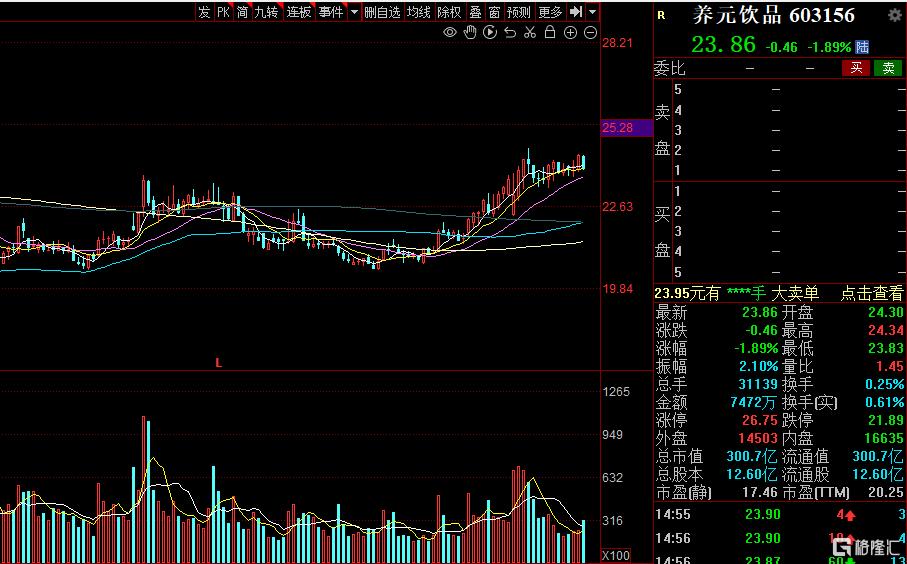 二级市场上,截至25日收盘,养元饮品报23.86元/股,公司总市值300.7亿元。