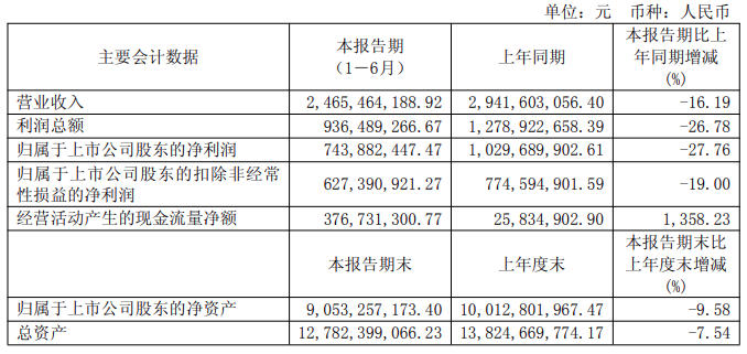 近日,“六个核桃”母公司养元饮品(603156.SH)披露2025年半年报,实现营收24.65亿元,同比下滑16.19%,归母净利润7.44亿元,同比下滑27.76%,扣非净利润6.27亿元,同比下滑19%。