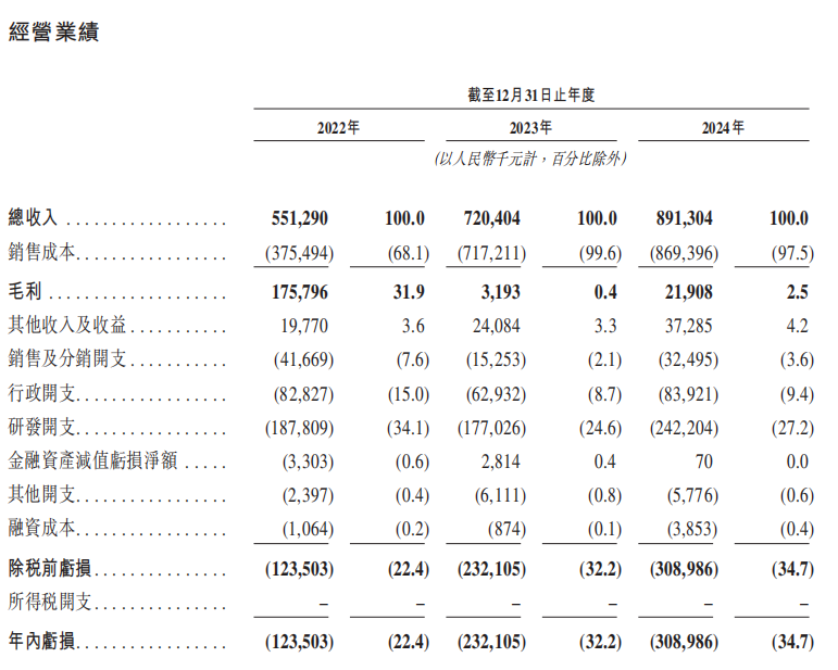 2022年至2024年,云英谷的营收分别为人民币(下同)5.51亿元,7.20亿元、8.91亿元;归母净利润方面,期间均为亏损且亏损规模逐年扩大,金额分别为1.24亿元、2.32亿元、3.09亿元。