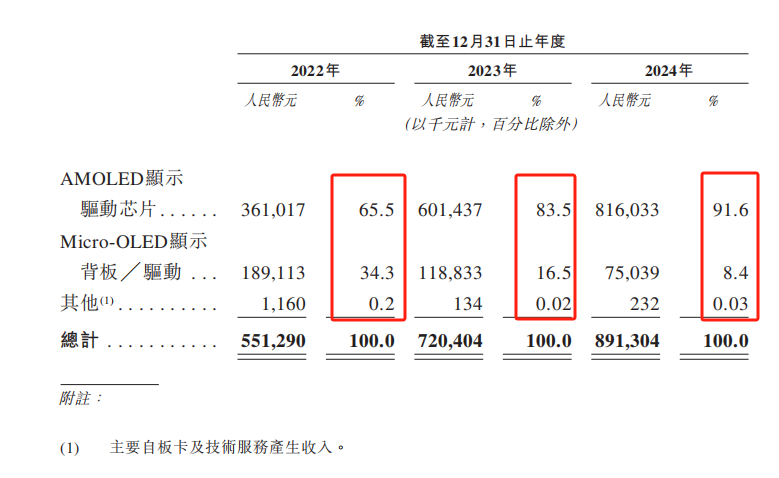 云英谷目前提供两类产品,分别是主要用于高端智能手机的OLED显示驱动芯片,以及主要用于支持AR/VR等头戴式设备的Micro-OLED显示背板/驱动,以前者为绝对核心,2022年至2024年前者占比分别高达65.5%、83.5%、91.6%。