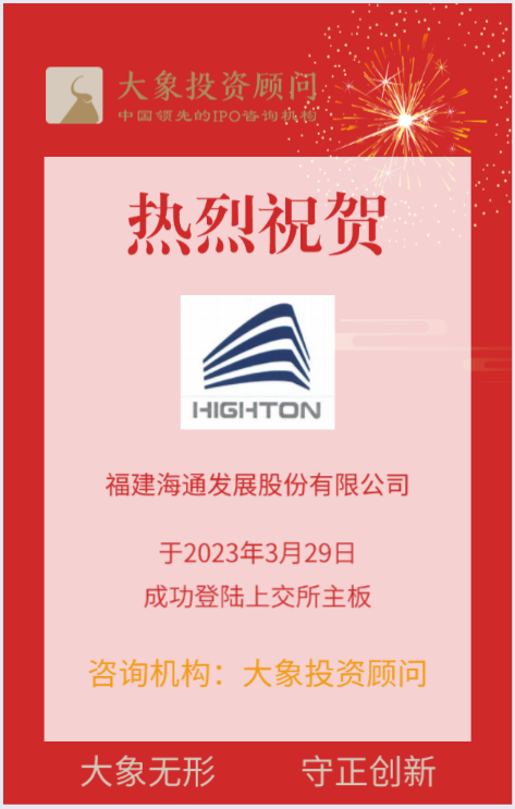 2023年3月29日,大象投顾客户——福建海通发展股份有限公司成功登陆上交所主板。