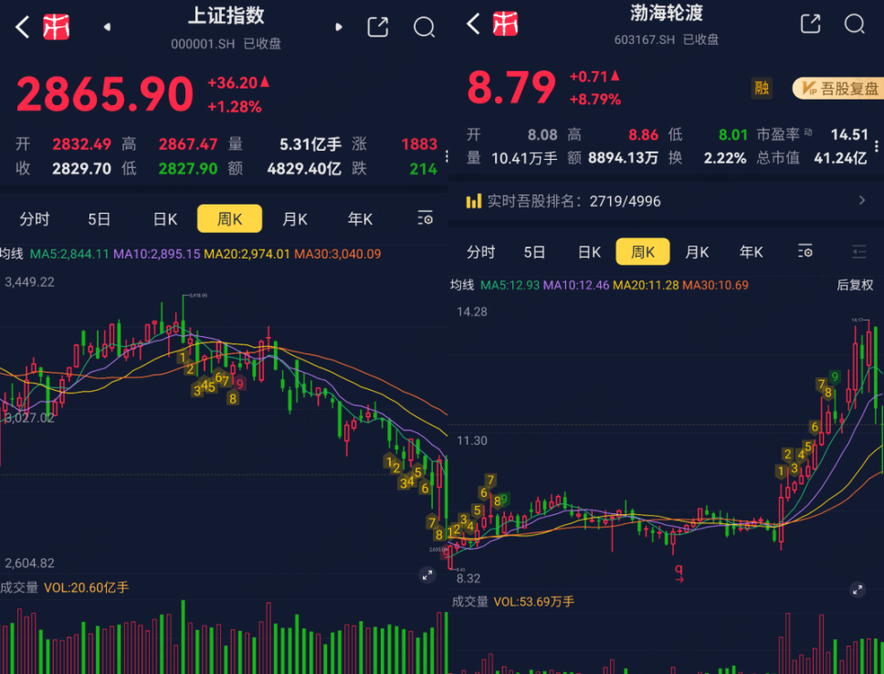 近期上证指数总体表现颓势,但风云君注意到渤海轮渡(603167.SH,下称公司)的股价走势颇为独立。