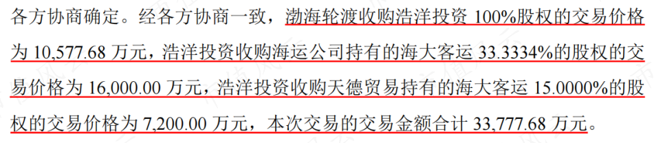 再说回前面提到的收购事项。2020年公司通过浩洋投资间接收购了海大客运66.7%股权,交易价格为3.4亿元。