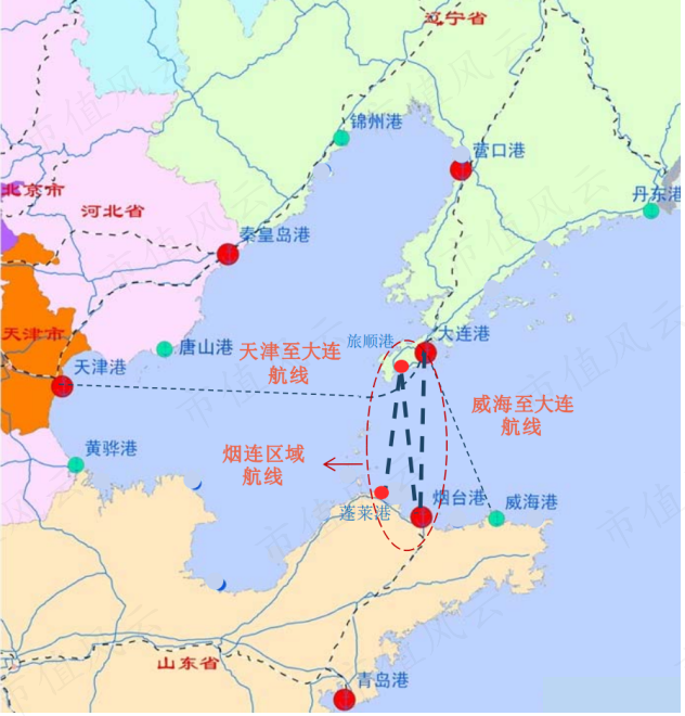 其中渤海轮渡车运、客运市场份额均位居市场第一,目前仍然保持这一局面。