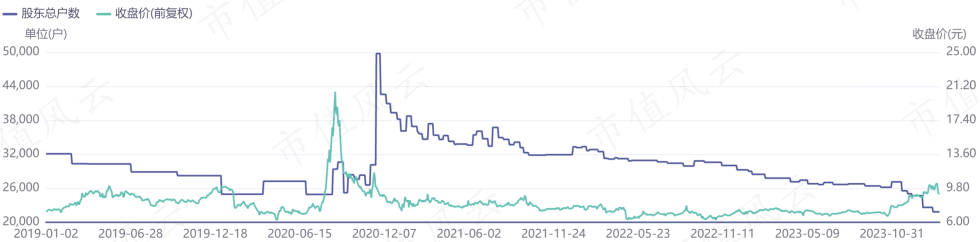 与此同时,2023年底,公司流通股股东中出现了9只基金,基金数量属于历史较高水平。