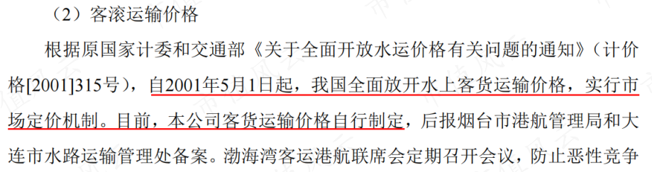 目前水上客货运输实行市场定价机制,公司具备一定的自主定价权。