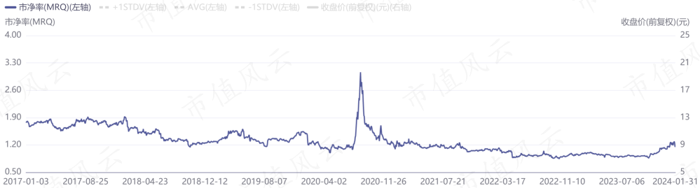 2017年至今,公司PB在0.9-3.1区间;如果剔除2020年度股价大幅波动影响,公司PB大致在0.9-1.9区间。目前PB为1.2。