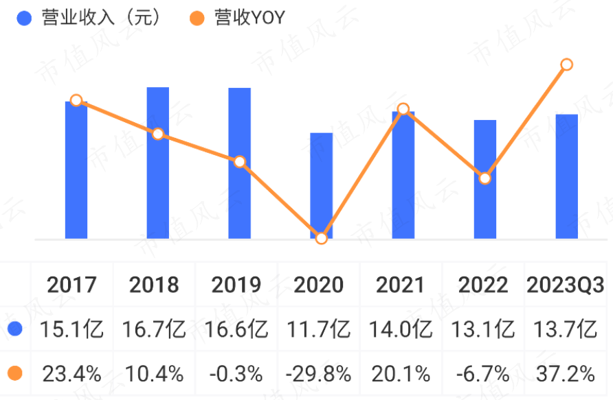 2020-2022年,公司营收总体表现不理想。2023年前三季度,营收同比增长37%。