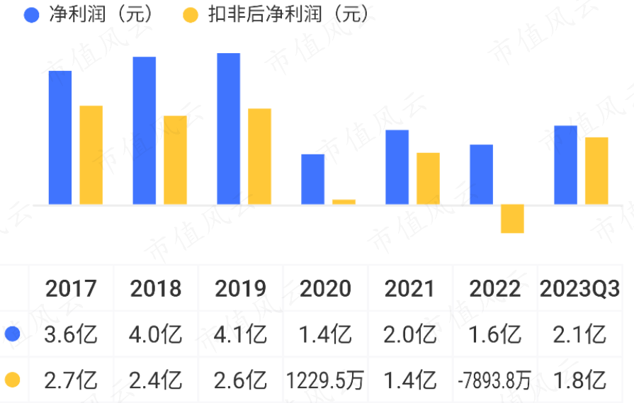 利润情况同样也不佳,2022年扣非归母净利润一度转负。2023年前三季度,利润情况有所好转,归母净利润同比增长92%。