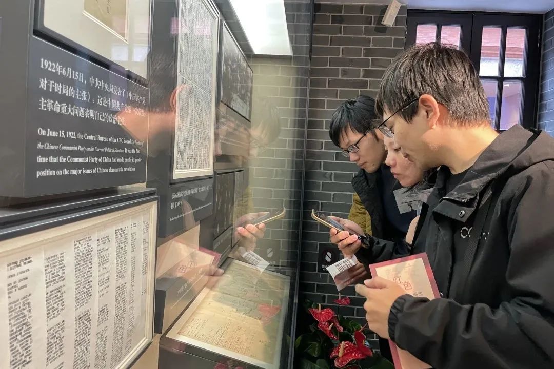 中共二大会址纪念馆位于上海市静安区,是中国共产党第一部党章的诞生地。大家怀着崇敬的心情先后参观了序厅、中共二大展厅、中共二大会议旧址、党章历程厅、平民女校旧址展厅五个展区,认真观摩陈列的资料,仔细聆听百年前的故事,以沉浸式学习方式回顾党的百年历程,重温革命峥嵘岁月,切身感受中国共产党创建初期的艰辛。