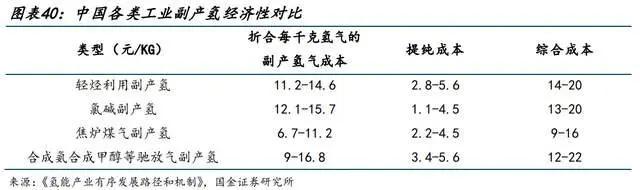 由于副产氢主要作为化工过程的副产品或放空气,可作为近期低成本的分布式氢能供应源。