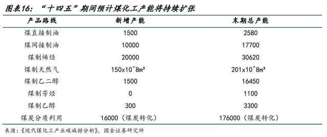根据《现代煤化工产业碳减排分析》预测数据,“十四五”期间煤化工产能有望保持增长,