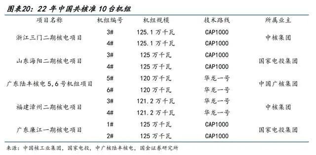 “十四五”期间,核电站建设前景广阔。22年中国共核准10台机组,根据23年全国能源工作会议信息,23年预计新增核电装机289万千瓦,在运规模达到5846万千瓦。根据“十四五”规划,预计2025年核电运行装机容量将达到7000万千瓦。