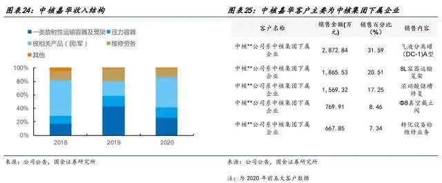 收购中核嘉华股权后,公司在核能领域产品覆盖从上游核化工设备、核燃料贮运容器,中游核电站压力容器、板式换热器,下游核燃料循环后处理设备,取得了中核集团、中广核集团等40余家核电业主单位供应商资格。