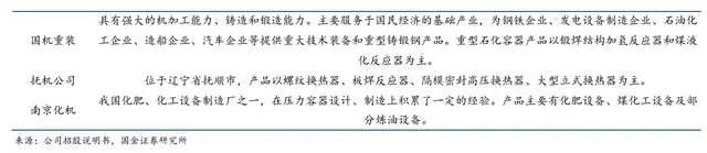 1)传统能源:国内最大直径、最大吨位螺纹换热器制造商,是国内炼油行业四合一连续重整反应器设备独家供应商,代表着国内重型压力容器的领先制造水平。同时,在锻焊式压力容器制造领域,公司可生产单台重达2000吨级的大型锻焊式加氢反应器,打破了国内少数企业在千吨级以上大型锻焊式压力容器制造领域中的垄断地位。