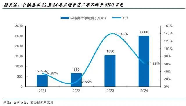 1)从业绩承诺看:金核投资承诺中核嘉华22至24年,净利润不低于650、1550、2500万元。