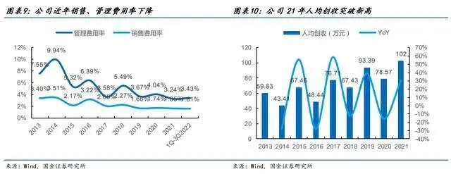 3)公司通过一系列措施推动降本增效,人均创收达新高,销售、管理费用率下降。公司持续推进阿米巴经营模式,提升运营效率;并落实超经营目标奖励兑现,持续推动内部薪酬差异化分配;深化全面预算管理,积极实施降本增效。从结果看,公司盈利能力提升,人均创收达新高,销售、管理费用率下降。