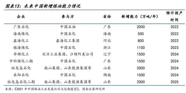 22年预计中国炼油能力将进一步增长至9.37亿吨/年,其中新增能力3300万吨/年,主要来自广东石化、海南炼化等公司;山东3家地方炼厂将再淘汰炼油能力740万吨/年。