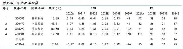 选择部分业务与公司相近的科新机电、中密控股、景业智能、航天晨光作为公司可比公司,可比公司22至24年平均PE为54X/36X/26X。