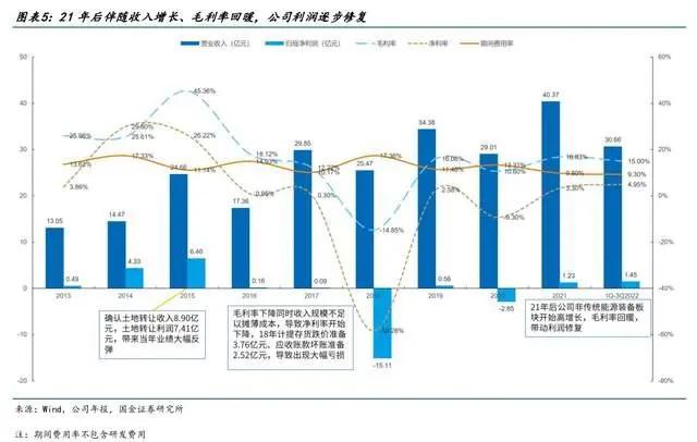 由于公司主要产品为重型压力容器,受下游炼化、煤化工等行业周期性影响,公司收入呈周期性上行趋势,21年伴随非传统能源装备收入高增长,收入规模突破40亿。利润端受周期性影响公司历史上波动较大,从21年后伴随毛利率回暖,利润逐步修复。公司期间费用率(不考虑研发费用)21年后下降至10%以下,后续伴随收入增长有望进一步下降。