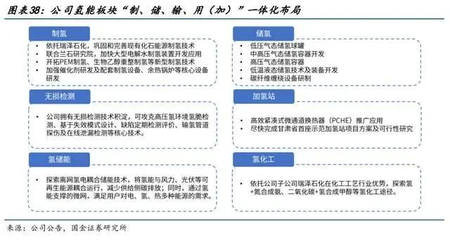 3.3 氢能:“制、储、输、用(加)”一体化布局,研发持续突破