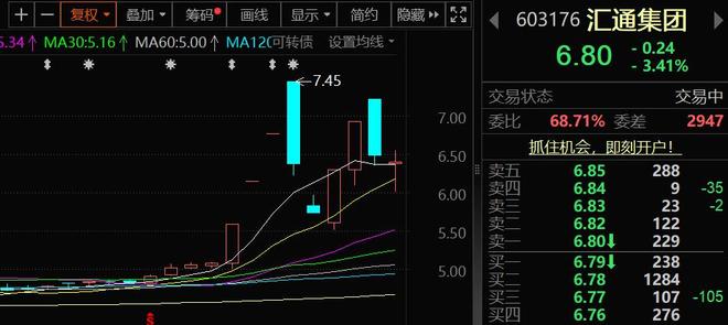 7月17日,汇通集团同样作为价格涨跌幅限制的日收盘价格跌幅偏离值达到7%的前五只证券而登榜。
