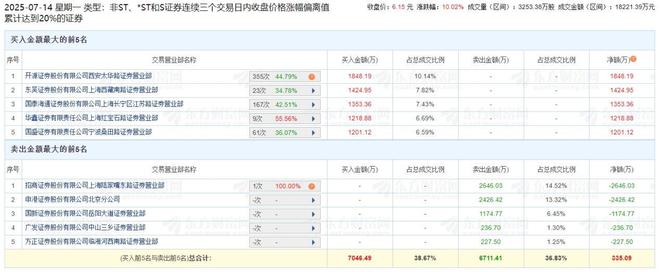 7月14日,汇通集团因非ST、*ST和S证券连续三个交易日内收盘价格涨幅偏离值累计达到20%登上龙虎榜。
