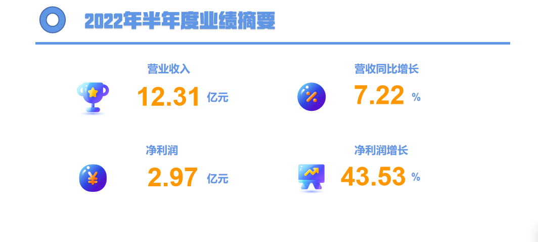 2022年上半年皇马科技整体保持稳健发展,经营业绩稳中向好。1-6月份,皇马科技实现营业收入12.31亿元,比上年同期增加7.22%;归属于上市公司股东的净利润2.97亿元,比上年同期增长43.53%。