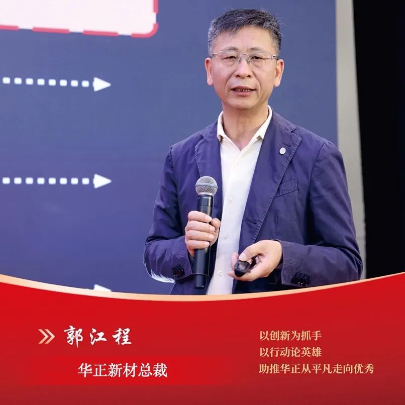 随后,华正新材总裁郭江程带来精彩报告。他对本次年会主题“从平凡走向优秀”作了解答,再到为了摆脱平凡,发出“发展一定要创新和行动”的号召!