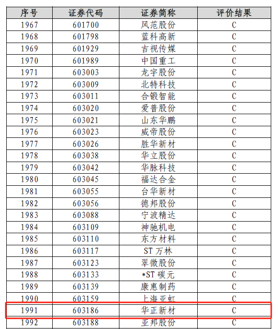 评价结果显示,华正新材的信披评价结果被交易所从B降到C。