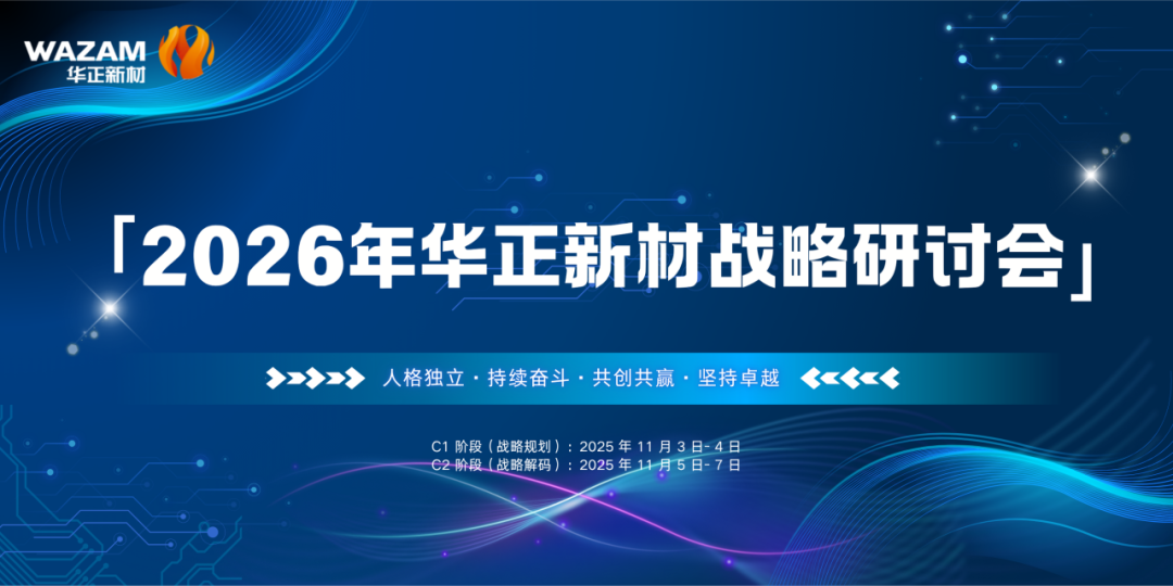 谋远驭势,战略领航。2025年11月3日至7日,华正新材2026年战略研讨会(含C1和C2)隆重召开。本次研讨会以落实“五年一制定,三年一调整,一年一滚动”战略方针为核心,旨在强化战略全流程连贯性与可执行性,凝聚跨部门战略共识,完成2026-2030新周期战略SP刷新及落地路径拆解,同时将 AI 算力赛道纳入新周期核心布局,为企业高质量发展谋篇布局。华立集团总裁汪思洋、华立集团营运总监杨庆军、华正新材董事长刘涛、总裁郭江程等中高管及骨干员工全程参与,共绘战略发展新蓝图。