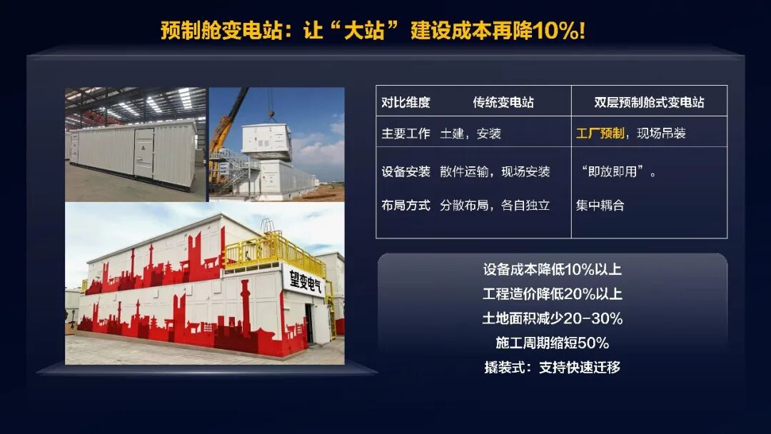 与此同时,配套发布的模块化110KV预制舱变电站,摒弃了传统土建模式,采用撬装式设计。相比传统方案,新方案设备成本降低10%以上,工程造价下降超20%,土地面积减少20%-30%,施工周期缩短50%。两大产品的协同,构建了“大站小站都好建”的全面解决方案。