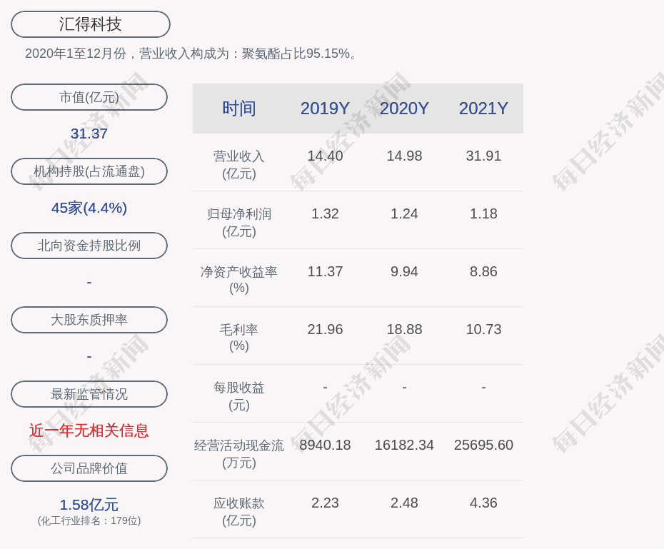 1.近30日内无机构对汇得科技进行调研。