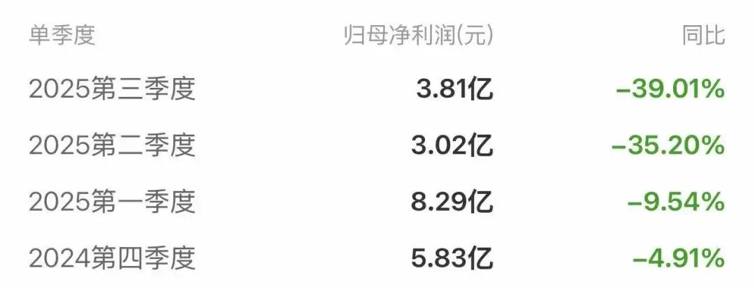 数据是最诚实的发言人。2025年前三季度,迎驾贡酒交出了一份令市场揪心的成绩单:营收45.16亿元,净利润15.11亿元,双双同比下滑超过18%和24%。更令人忧虑的是,这并非单季度的偶然失手,而是连续四个季度的持续滑坡。