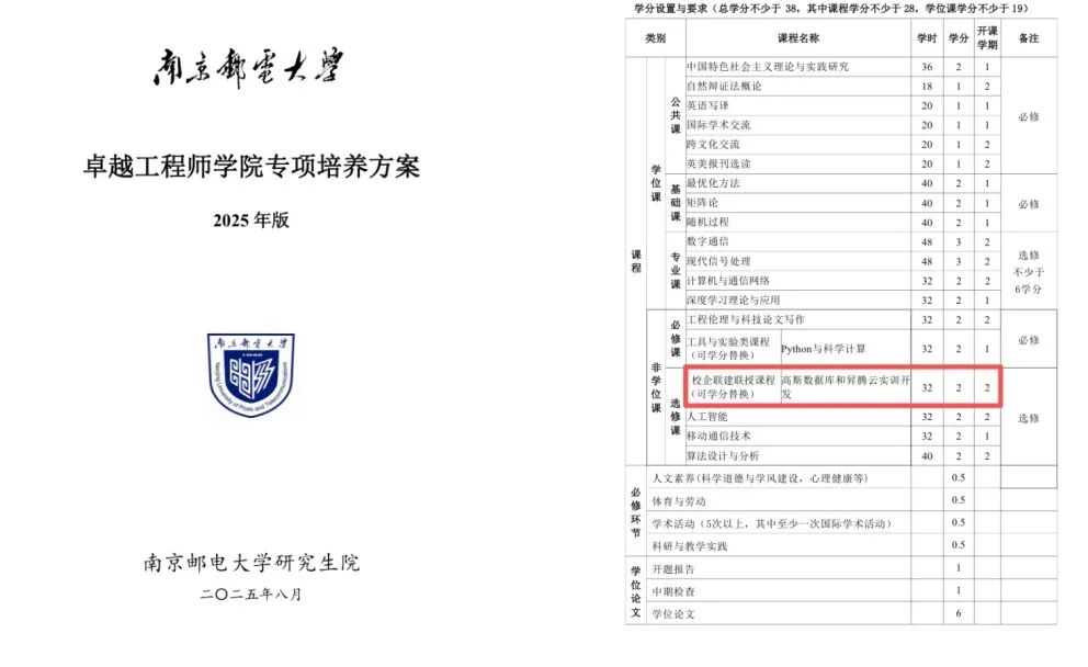 围绕国家卓越工程师培养重大战略任务,双方共建的《高斯数据库与昇腾云实训开发》课程已纳入南邮卓越工程师学院2026年春季培养方案。课程立足信创产业前沿,紧扣华为等头部企业人才需求设立定向培养计划,从课程设置、实训场景到师资配备均深度贴合企业实际,为学员铺设通往优质实习与就业的“绿色通道”。目前,该课程已推广至多个院校,通过跨校资源共享,助力更多高校完善卓越工程师及本科生培养体系。