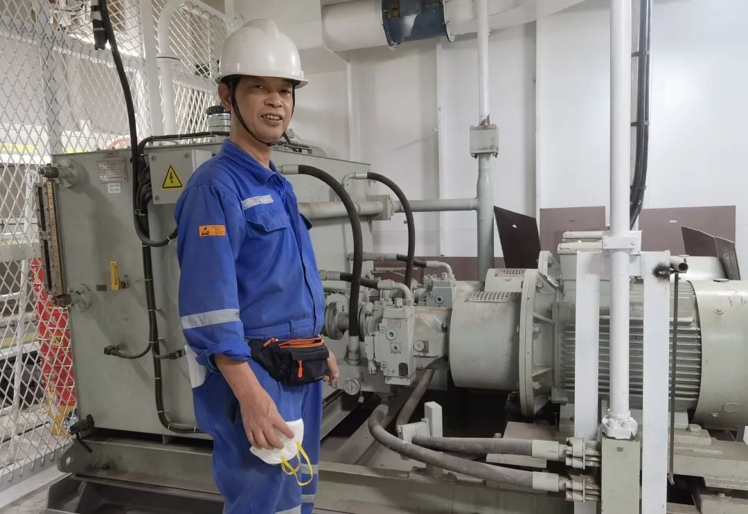 王文金轮机长2000年加入公司,在公司服务22年。在公司只要说起他的名字,大家无不竖起大拇指,这不仅是对他专业能力的肯定,更是对他敬业精神的钦佩。