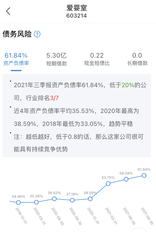 同时公司上市之后持续攀升的资产负债率或许也是大股东减持的重要原因之一吧。去年第三季度公司的资产负债率已经达到了61.8%,创下了近几个报告期的新高,同时从其往期的资产负债率折线图来看,公司当前的债务风险也没有明显的下降趋势。而这些只增不减的债务风险都将是爱婴室个大股东的顾虑所在。而短期内,公司似乎也没有什么较好的方法来降低公司的债务水平。由此,在大股东清仓减持后公司或许也要面临一大批中小股东的离场了,而这些,对于公司的股价来说,无疑是进一步的釜底抽薪。