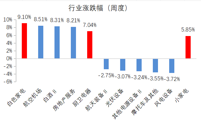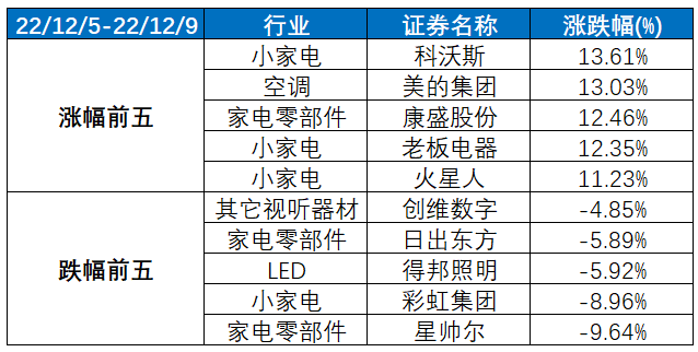 12月2日至12月9日白色家电涨9.1%,小家电涨5.85%,厨卫电器涨7.04%,大幅跑赢主要股指。