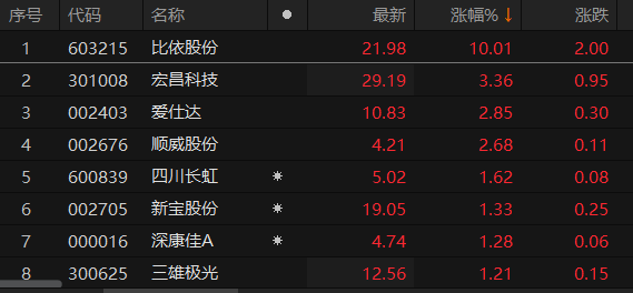 7月6日早盘,申万一级行业板块中,家用电器板块表现活跃。截至9时43分,比依股份涨停,宏昌科技涨逾3%,爱仕达、顺威股份涨超2%,四川长虹等跟涨。