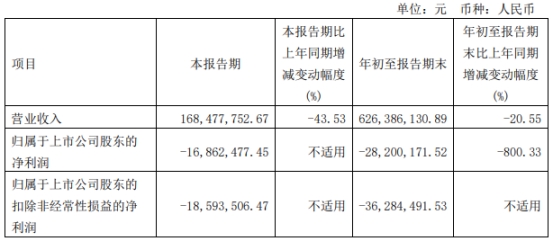 今年第三季度,爱丽家居实现营业收入1.68亿元,同比下降43.53%;归属于上市公司股东的净利润为-1686.25万元,上年同期为-377.63万元;归属于上市公司股东的扣除非经常性损益的净利润为-1859.35万元,上年同期为-612.44万元。