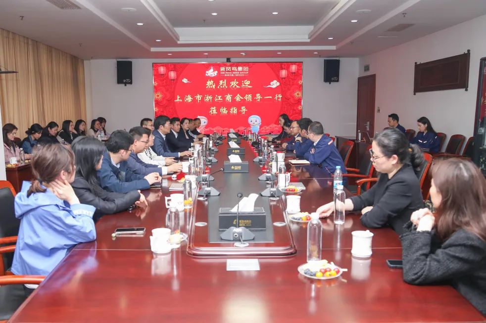 4月30日上午,上海市浙江商会党委副书记、执行副会长、秘书长吴仲春,浙江省人民政府驻上海办事处长三角联络合作处(浙商联络处)副处长易俊明等领导莅临新凤鸣走访交流,集团董事长庄耀中、控股集团副总裁王会成等热情接待。